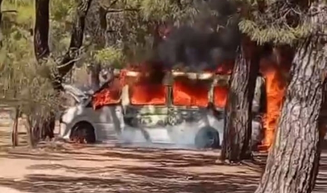 Minibüsü kullanılamaz hale getiren yangının çıkış nedeniyle ilgili inceleme başlatıldı.
