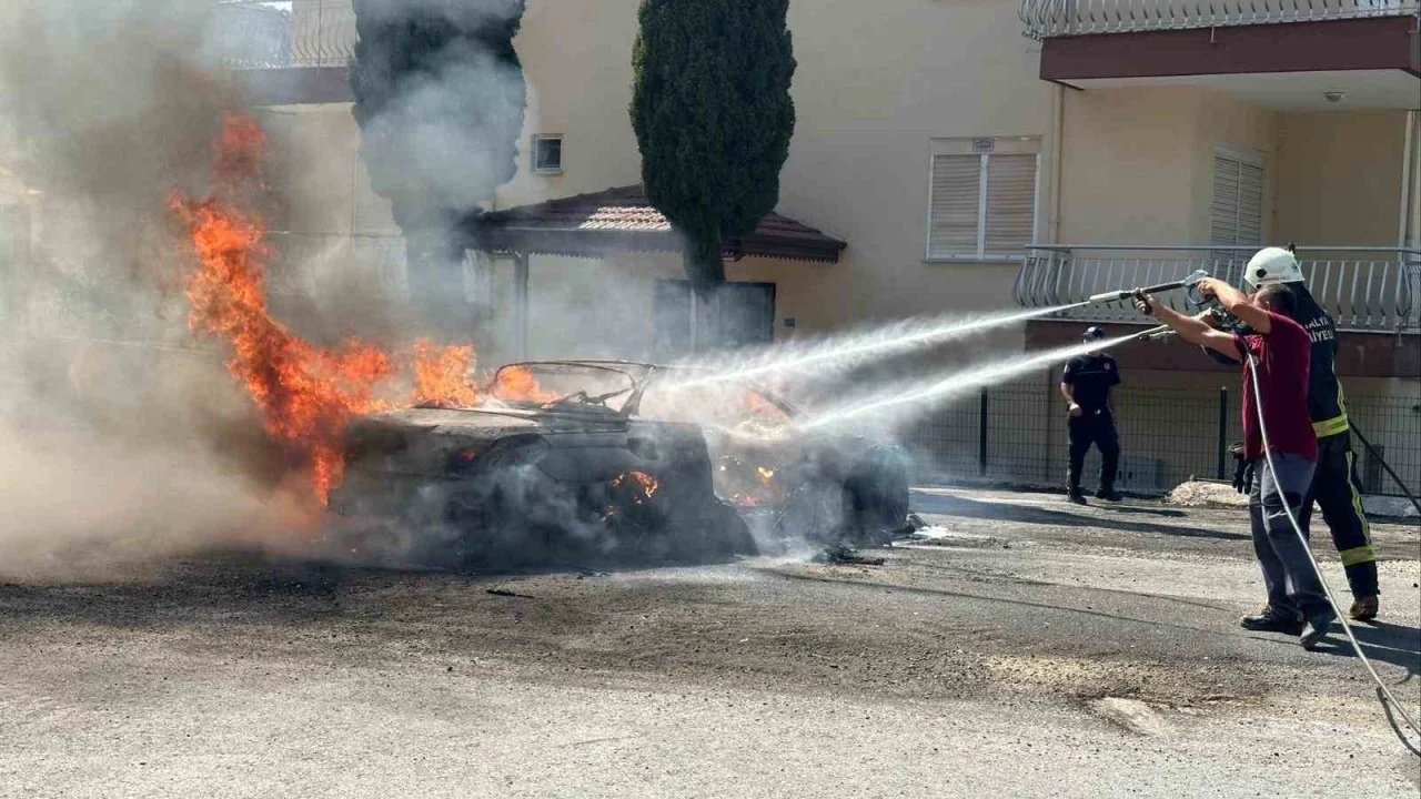Olay, Alanya’nın İmamlı Mahallesi’nde meydana geldi. Edinilen bilgiye göre, GS 05 GAL yabancı plakalı BMW marka otomobiliyle seyir halindeki H.D. aracından dumanlar yükseldiğini fark etti. Sürücü aracı yol kenarına çekerek hemen kendisini dışarı attı. Kısa sürede alev topuna dönen araca müdahale için olay yerine jandarma ve itfaiye ekipleri sevk edildi.