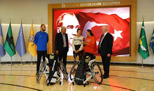 Büyükşehir Belediyesi'nde gerçekleşen teslim törenine Antalya Büyükşehir Belediyesi Genel Sekreter Yardımcısı Durmuş Ali Arslan, Gençlik ve Spor Hizmetleri Dairesi Başkanı Nurettin Tonguç, sporcular ve antrenörleri katıldı. Genel Sekreter Yardımcısı Arslan, engel tanımayan sporcuların büyük başarılara imza attığını belirterek, "Başkanımız Muhittin Böcek, milli sporcularımızın kullanım ömrü tamamlanan tekerlekli sandalyelerinin ve raketlerinin değiştirilmesi talimatını verdi. Başkanımızın çam sakızı çoban armağanı olarak bu ekipmanları Antalya'mızın gururu olan sporcularımıza takdim ettik. Engelli sporcularımıza desteklerimiz devam edecek" dedi.