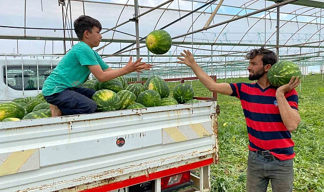 Hasat konusunda ham karpuza dikkat edilmesi gerektiğini belirten karpuz üreticisi Nazif Yılmaz, "Yukarıçatma Mahallesinde seramızda karpuz hasatı yapıyoruz. 35 dönüm bir alanımız var. Güzlük, bahar karpuz üretimi yapıyoruz. Burayı 5 Ocak gibi ektik, 23 Nisan'da hasatımızı yapıyoruz. Ortalama 250 ton civarında bir beklentimiz var" dedi.