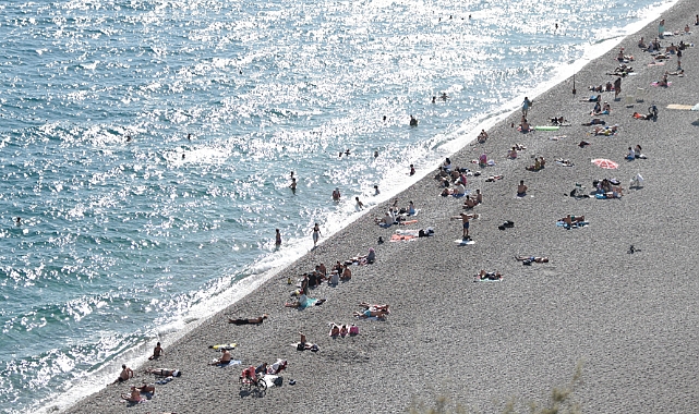 Sıcaktan bunalan kent sakinleri ile turistler, Konyaaltı ve Lara sahillerinde denize girip serinlemeye çalıştı.