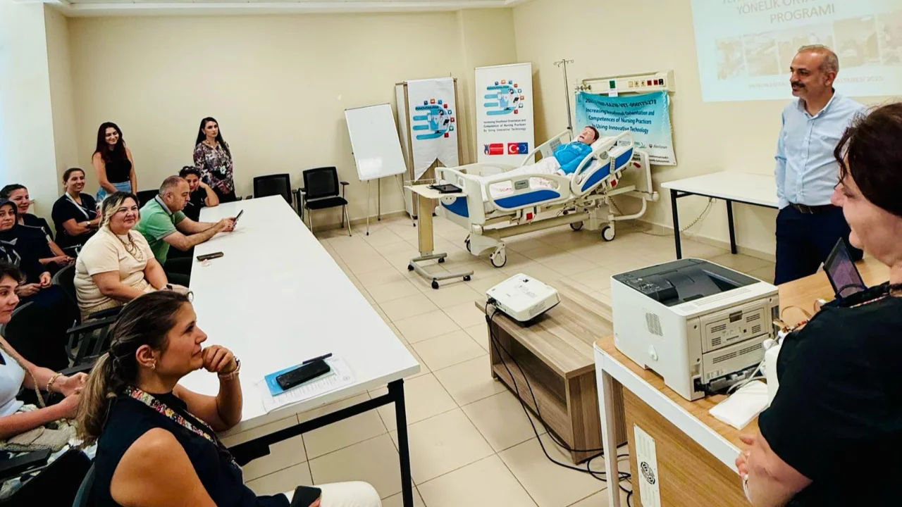 Eğitimlerde kullanılan sanal gerçeklik gözlüğü (VR), dijital simülasyon maketleri ve çağdaş yöntemlerle hemşirelerin temel yetkinliklerinin güçlendirilmesi, mesleki adaptasyonlarının hızlandırılması ve profesyonelleşmenin desteklenmesi amaçlandı.