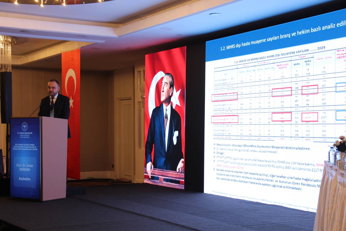 Türkiye'nin 81 ilinden katılan Kamu Hastaneleri Başkanları, il değerlendirme sorumluları, sağlık tesisi yöneticileri ve değerlendiricilerin önemli konuları ele aldığı program, Belek Turizm Merkezi'ndeki bir otelde düzenlendi.