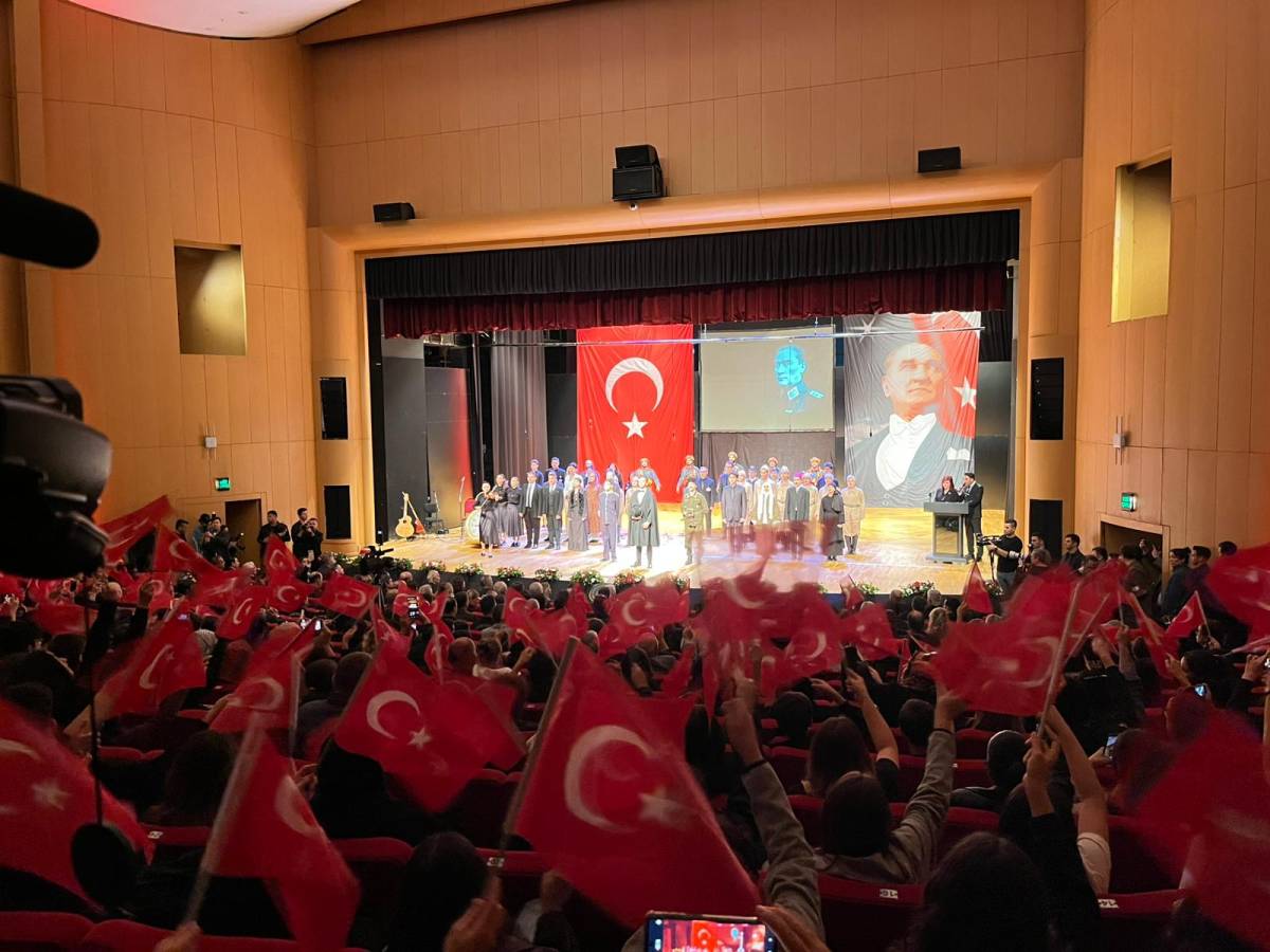 Atatürk Kültür Merkezi'nde (AKM) düzenlenen program, saygı duruşu ve İstiklal Marşı'nın okunmasıyla başladı.