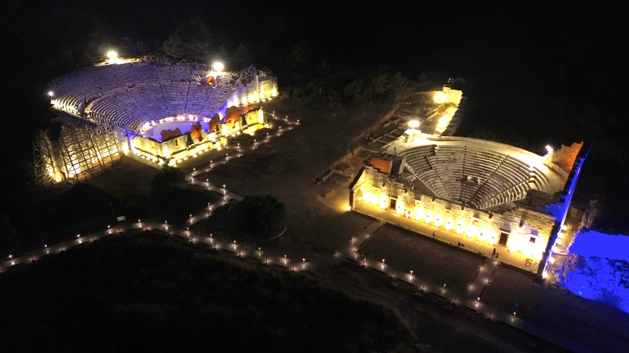 Doğal güzellikleriyle yerli ve yabancı turistlerin ilgisini çeken Antalya'nın Kaş ilçesi, Patara Antik Kenti'nin ışıklandırılmasıyla gece müzeciliğiyle de ziyaretçilerini ağırlıyor.