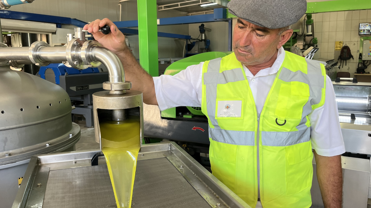 Konuşmanın ardından çiftçiler getirdikleri zeytinleri, yağa dönüştürmek için fabrikaya boşalttı.