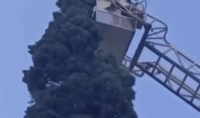 Ayağına ip takılınca ağaçta mahsur kalan karganın imdadına itfaiye yetişti