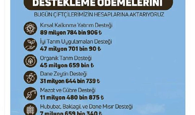 TARIM ve Orman Bakanı İbrahim Yumaklı, 237 milyon 819 bin TL tarımsal destekleme ödemesinin bugün çiftçilerin hesabına aktarılacağını duyurdu
