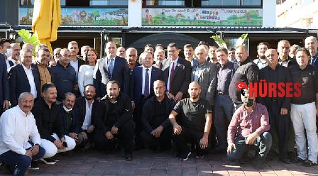 ANTALYA Büyükşehir Belediye Başkanı Muhittin Böcek, Konyaaltı Servisçi esnafı ile buluştu. Kendisinin de ulaşım esnaflığından geldiğini hatırlatan Başkan Böcek, 28 yıldır doğup büyüdüğü topraklara hizmet etmenin gururunu yaşadığını söyledi