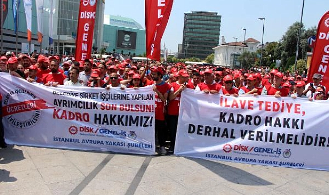 Devrimci İşçi Sendikaları Konfederasyonu (DİSK) Genel Hizmetler İşçileri Sendikası üyesi bir grup işçi, kadro haklarının verilmesi ve belediye şirket işçilerine uygulanan ayrımcılığa son verilmesi için örgütlü oldukları belediyelerde iş bırakma eylemi yaptı. Mecidiyeköy'de bir araya gelen işçiler bir AVM'nin önüne doğru yürüyüşe geçti. Burada 'Belediye şirket işçilerine yapılan ayrımcılık son bulsun. Kadro hakkı verilmelidir' yazılı pankart açtı. Hep birlikte halay çeken işçiler, haklarının verilmesini talep etti.