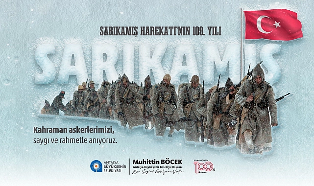 Antalya Büyükşehir Belediye Başkanı ve aynı makam için yerel seçimlerde Aday Adayı Olan Muhittin Böcek: ‘’ Sarıkamış Harekatı'nın 109'uncu yılında vatan uğruna can veren aziz şehitlerimizi rahmet ve minnetle anıyorum. Ruhları şad olsun’’ dedi.