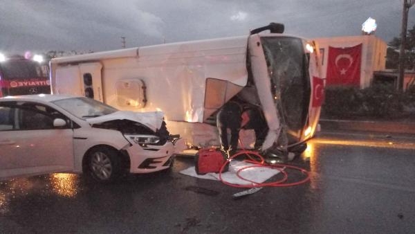 Kaza, 28 Ekim'de sabah saatlerinde Bodrum ilçesi Gümbet Kavşağı yakınlarında meydana geldi. Konacık Jandarma Kavşağı'ndan Gümbet Kavşağı yönüne giden Hasan Özsezgin yönetimindeki 48 VR 154 plakalı Bodrum Belediyesi'ne ait servis midibüsü, yağmur nedeniyle kayganlaşan yolda kontrolden çıktı. Refüjü aşan midibüs, karşı şeride geçerek devrildi. Bu sırada Erkan A. yönetimindeki 48 AJG 471 plakalı otomobil, midibüse çarptı. Kazada otomobil sürücüsü Erkan A., yanındaki eşi Aysel A. ve oğlu Ayaz A. (4) ile midibüs şoförü Hasan Özsezgin yaralandı. İhbarla kaza yerine sağlık, polis ve itfaiye ekipleri sevk edildi. Midibüste sıkışan sürücü Özsezgin, itfaiye ekiplerince çıkarıldı.