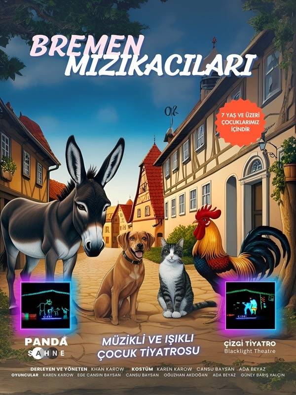 “Bremen Mızıkacıları” çocuk tiyatro oyunu, bugün saat 15.00’te Panda Sahne’de minik izleyicilerle buluşacak.