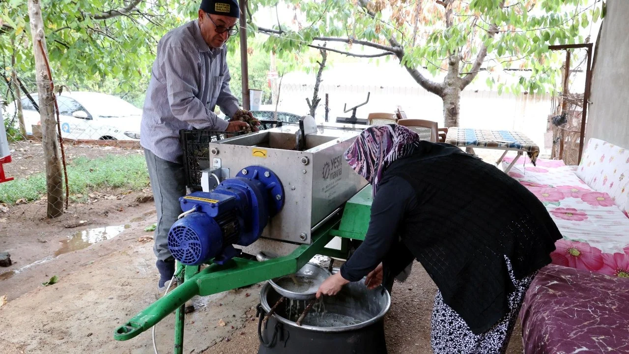 ANTALYA Büyükşehir Belediyesi, üzüm ve pekmez üretiminin yoğun olarak yapıldığı ilçelere üzüm sıkma makinesi hibesinde bulunuyor. Büyükşehir Belediyesi'nin üzüm sıkma makineleri gelen talepler doğrultusunda mahalle mahalle dolaşarak pekmez üretimi yapan üreticilere destek sağlıyor.