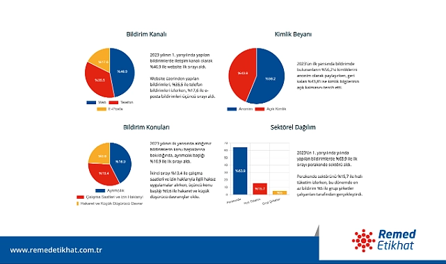2023 yılının ilk yarısında gerçekleşen bildirimlerde en çok kullanılan iletişim kanalı yüzde 46,9 ile web sitesi oldu. Web sitesi üzerinden yapılan bildirimleri, yüzde 35,5 ile telefon bildirimleri takip ederken; üçüncü sırayı yüzde 17,6 ile e-posta bildirimleri yer alıyor.