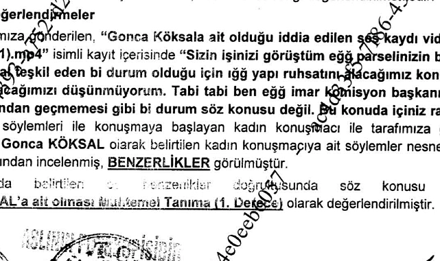 Öte yandan Ankara Bölge Kriminal Polis Laboratuvarı Müdürlüğü Ses İnceleme Büro Amirliği'nce ses kaydı incelendi. Raporda kaydın Gonca Köksal'a ait olduğunun birinci derecede tespit edildiği yer aldı.