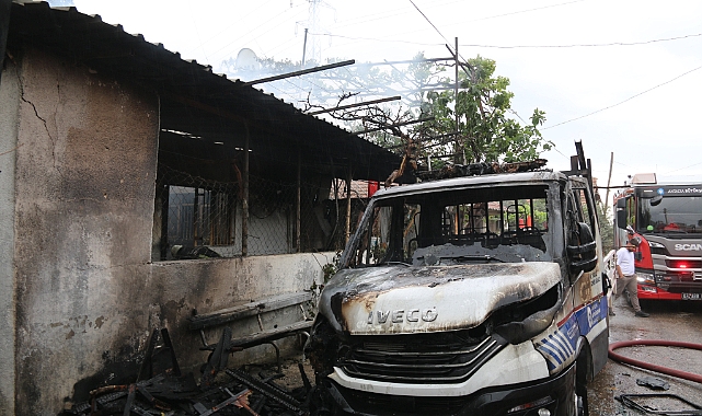Antalya’nın Kepez ilçesinde çocukların süngeri yakması ile çıktığı iddia edilen yangında bir gecekondu ve Büyükşehir Belediyesinin vektörle mücadelede kullandığı kamyonet yandı. Dumandan etkilenen ev sahibine ilk müdahalesi olay yerinde yapıldı.
