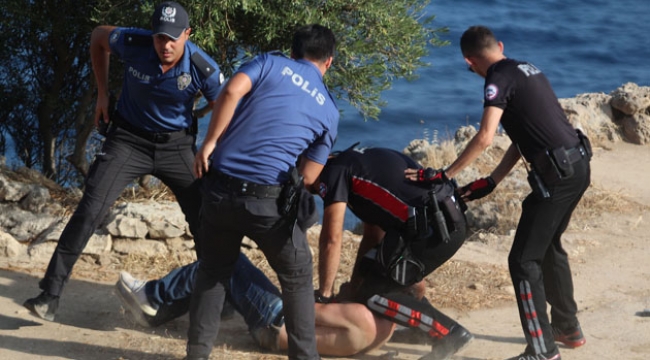 Edinilen bilgiye göre, olay saat 17.00 sırasında Atatürk Parkı Varyant falezlerde meydana geldi. İddiaya göre, ailevi sorunları bulunduğu iddia edilen Hüseyin D. (45) falezler üzerine gelip alkol almaya başladı. Üzerindeki gömleğini çıkarıp alkolün etkisiyle kendinden geçen Hüseyin D., falezler üzerindeki otları da yakmaya başladı. Falezler üzerindeki Hüseyin D.’yi görenler durumu 112 Acil Çağrı Merkezi’ne bildirdi. İhbarla bölgeye çok sayıda polis ve itfaiye ekibi geldi. Falezler üzerinde ileri geri giden Hüseyin D., zaman zaman yaktığı ateşin dumanını içine çekti. Kendisini ikna etmeye çalışan polislere Hüseyin D., “Polisimize saygım var” diye seslendi. Denizde görev alan deniz polisine dönen Hüseyin D., “Baba kusura bakmayın” dedi.