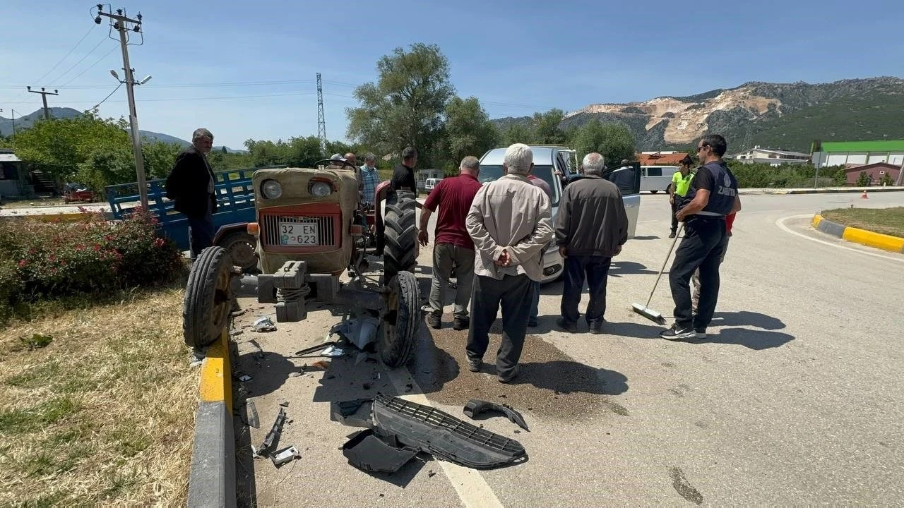 Eğirdir’de traktör ile otomobil çarpıştı: 3 yaralı