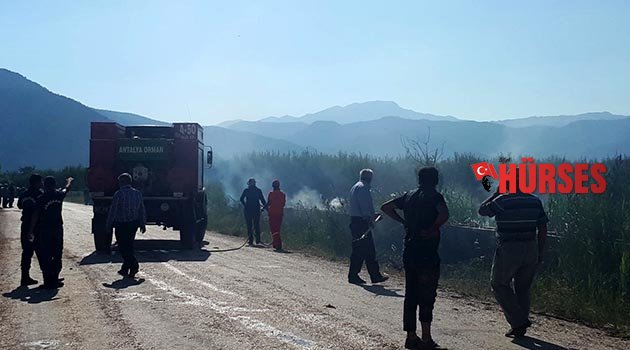 Elmalı'ya bağlı Mursal Mahallesi Kırklar mevkisinde saat 17.00 sıralarında tarlada balya yapan makineden yangın çıktı. Büyüyen yangın buğday ve nohut tarlalarının yanı sıra yakındaki elma bahçesine de sıçradı. Yangına önce çevredeki vatandaşlar ve mahalleli ilk müdahaleyi yaptı. Daha sonra ihbar üzerine olay yerine Elmalı Orman İşletme Şefliği ve Elmalı Belediyesi'ne bağlı ekiplerle Antalya Büyükşehir Belediye itfaiyesi yönlendirildi. Yangın söndürme helikopteri de yangına havadan müdahalede bulundu. Yangın yarım saatlik çalışmanın ardından kontrol altına alınırken, soğutma çalışmaları başlatıldı. Yangın nedeniyle buğday ve nohut tarlalarıyla elma bahçesi ve çok sayıda saman balyasının zarar gördüğü belirtildi.