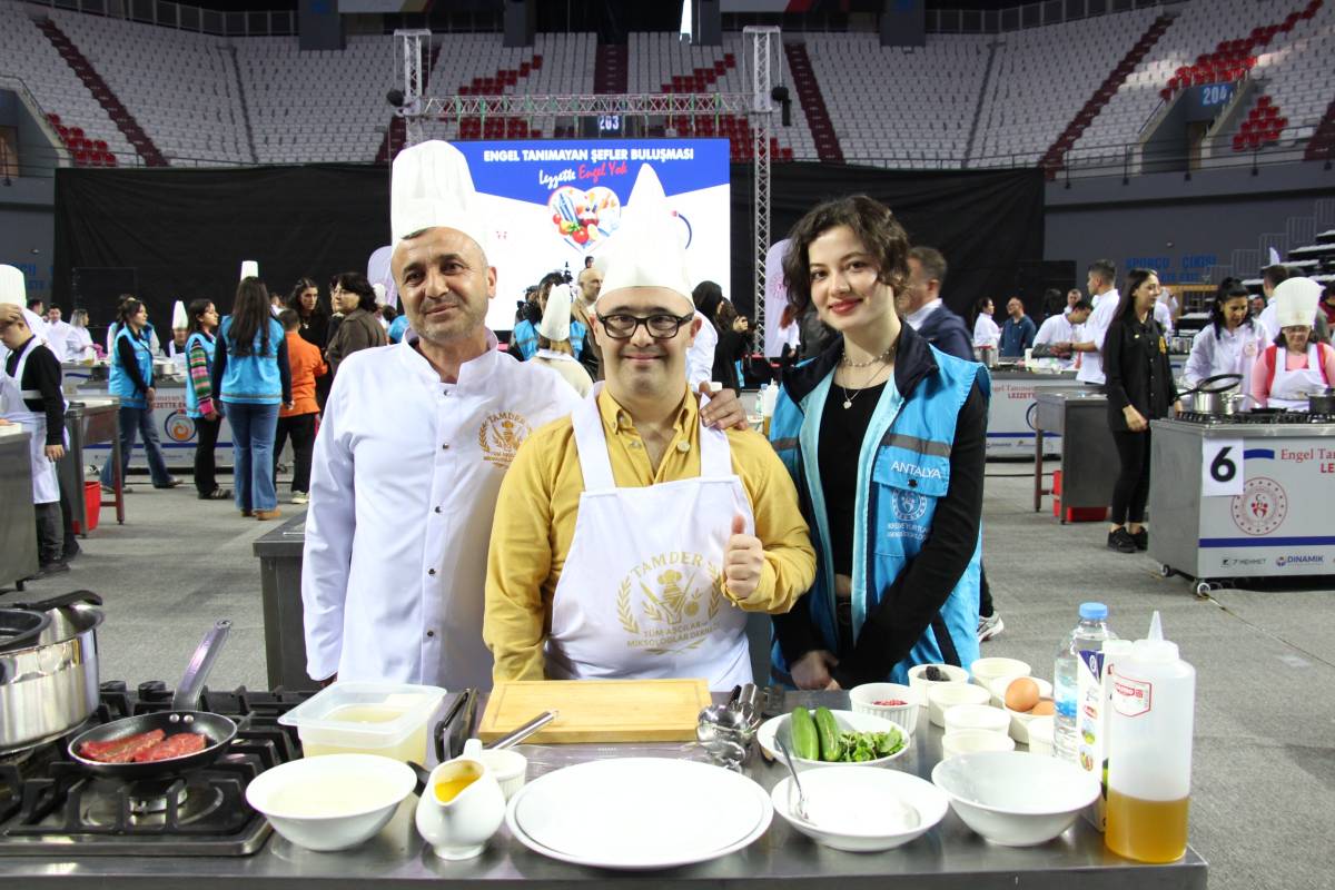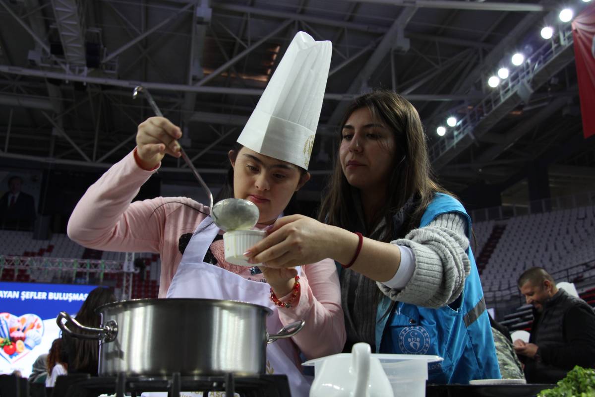 Antalya Valiliği himayesinde Antalya Spor Salonu'ndaki buluşmada, özel gereksinimli bireyler, kentteki ünlü şeflerle yemek yaptı.