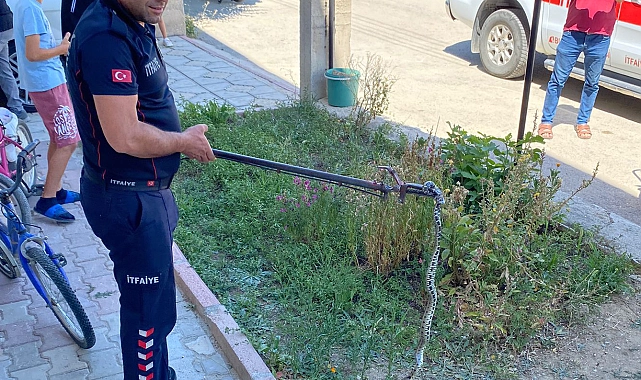 Barbaros Mahallesi'nde Hüseyin Kirişcan'ın evinin birinci katına yaklaşık 1,5 metre uzunluğunda yılan girdi. İhbar üzerine eve gelen itfaiye ekipleri yaptıkları arama sonrası yılanı yakaladı. Yılan doğal yaşam alanına salındı.