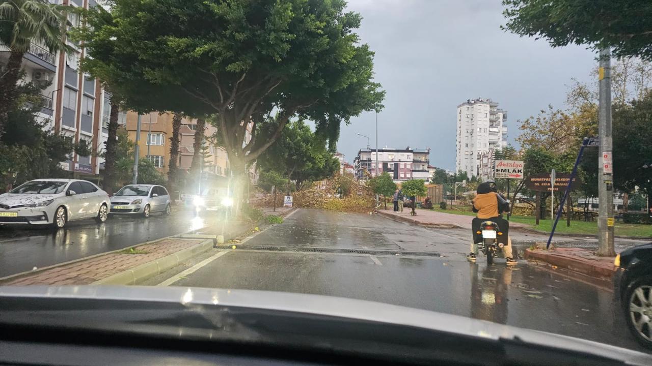 Antalya’da etkili olan sağanak yağışın ardından meydana gelen fırtına hayatı olumsuz etkiledi. Muratpaşa ilçesi Çınarlı Caddesi’nde şiddetli rüzgâr nedeniyle bir ağaç yola devrildi.