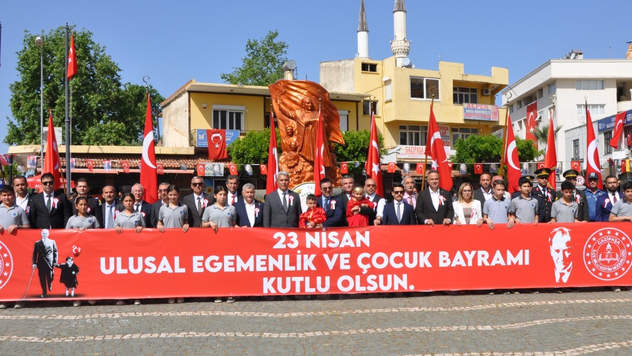 Cumhuriyet Meydanı'ndaki tören İlçe Milli Eğitim Müdürü Remzi Yetkin'in Atatürk Anıtı'na çelenk sunmasıyla başladı. Kutlamalar Gazi Mustafa Kemal İlk ve Ortaokulu'nda devam etti. Programa, Gazipaşa Kaymakamı Selami Korkutata, Cumhuriyet Başsavcısı Vekili Ali Elden, İlçe Emniyet Müdürü Mehmet Ali Kayhan, İlçe Jandarma Komutanı Üsteğmen Mehmet Akif Çolak, belediye başkan yardımcıları, kamu kurum amirleri, öğrenciler, öğretmenler ve vatandaşlar katıldı. Törende saygı duruşu ardından İstiklal Marşı'nın okundu. Kaymakam Korkutata, törene katılanlarınbayramını kutladı. İlçe Milli Eğitim Müdürü Remzi Yetkin, günün anlam ve önemine belirten konuşma yaptı. Kutlama okul öğrencilerinin hazırlayıp sunduğu programla devam etti. Programda öğrenciler halk oyunu gösterisi yaptı.