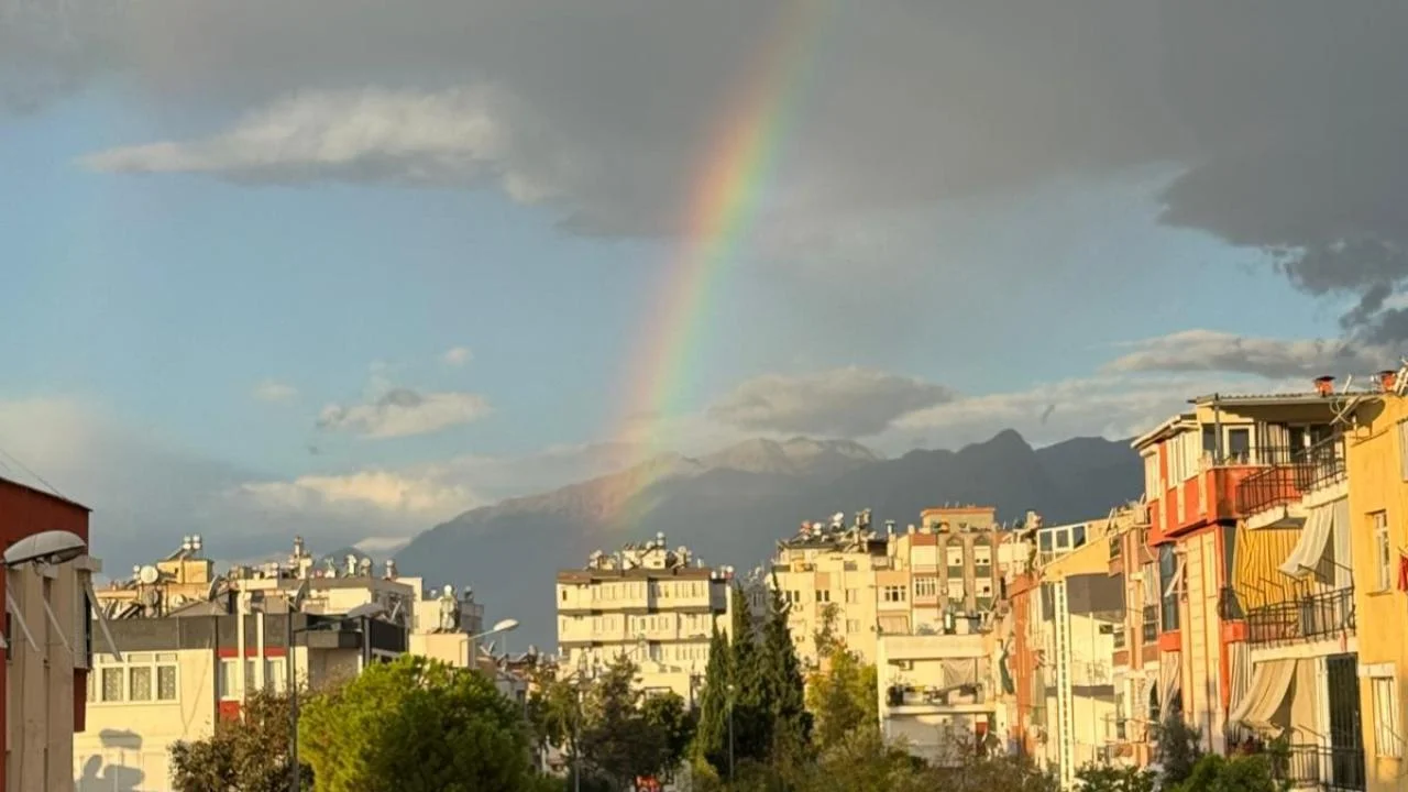 Antalya’nın Kepez ilçesinde gece boyunca etkili olan yağmurun ardından sabah saatlerinde gökyüzü adeta bir renk cümbüşüne büründü. Sabahın ilk saatlerinde güneşin bulutların arasından kendini göstermesiyle birlikte Kepez ilçesinden görülebilen muhteşem bir gökkuşağı oluştu.