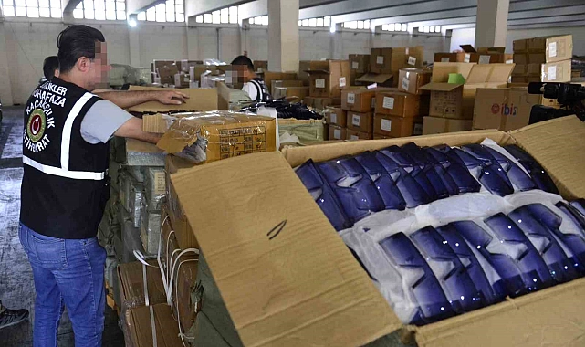 Olaya ilişkin soruşturmalar sürdürülürken, Mersin Limanı'nda ele geçirilen çok sayıda güneş gözlüğü ve optik tarzda işlenmiş plastik camlı gözlük görüntülendi.