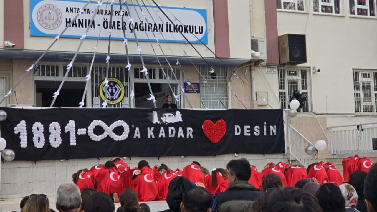 Antalya’nın Muratpaşa ilçesinde bulunan Hanım Ömer Çağıran İlkokulu’nda, Türkiye Cumhuriyeti’nin kurucusu Gazi Mustafa Kemal Atatürk’ün vefatının 87. yılı dolayısıyla anlamlı bir anma töreni düzenlendi.