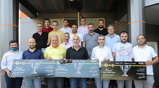 Alanyaspor Kulüp Başkanı Hasan Çavuşoğlu, Trabzonspor ile 29 Temmuz Çarşamba günü oynanacak Ziraat Türkiye Kupası final karşılaşması öncesinde başlatılan 'hatıra bilet' kampanyasına destek veren 5 iş insanı ve kurum yetkilisine biletlerini teslim etti
