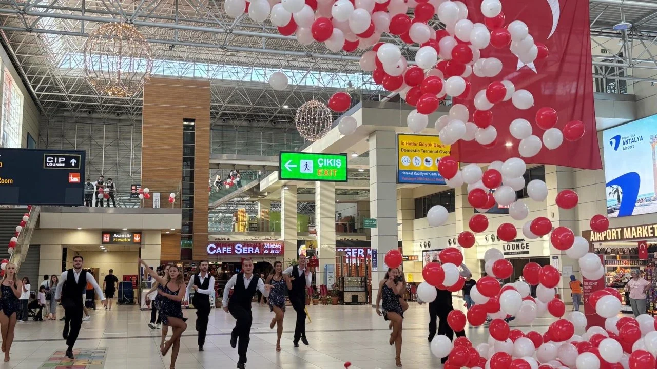 İç Hatlar Terminali kırmızı- beyaz balonlar, bayraklar ve Atatürk posterleriyle bezendi. Süslemelerin yanı sıra Zafer Bayramı'nın tarihçesini ve Büyük Taarruz'un önemini anlatan iki özel bilgilendirme panosu yolcuların ilgisine sunuldu. Kutlama programı kapsamında sahnelenen vals dans gösterileri ve geleneksel Zeybek performansları izleyicilerden beğeni topladı. Fraport TAV Antalya Havalimanı'ndaki 30 Ağustos etkinlikleri milli birlik, gurur ve zafer coşkusunun bir arada yaşandığı özel bir gün oldu.