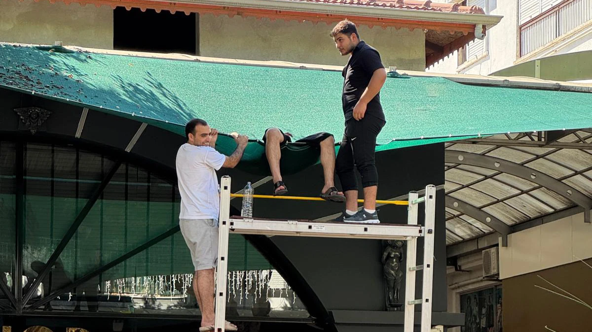 İkinci kattaki balkondan iş yerinin tentesine düştü