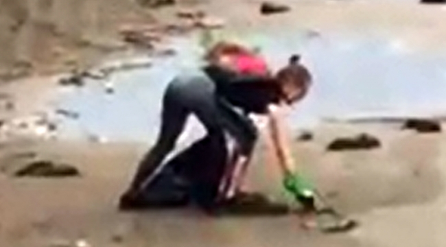 Antalya'da, bazı tatilcilerin plajlarda bıraktığı çöpler, kirlilik oluştururken, Finike sahilinde İngiliz kadın turist, tek başına sahildeki çöpleri topladı.