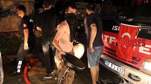 Dumanların yükselmesi üzerine işyeri sahibi ve çalışanlar durumu polis ve itfaiye ekiplerine haber verdi. İhbar üzerine olay yerine çok sayıda itfaiye ekibi ve polis sevk edildi. Yangın anında eğlence mekanında bulunan çok sayıda genç, kendilerini işyerinden dışarıya attı. Kısa süre sonra olay yerine gelen Antalya Büyükşehir Belediyesine bağlı itfaiye ekipleri, diğer işyerlerine sıçrama ihtimali bulunan yangına müdahale ederek kontrol altına aldı. Polis tarafından sokak araç trafiğine kapatılırken, işyerindeki ofis eşyaları ile müzik aletleri de diğer bir eğlence mekanına taşındı. Yangından oldukça korktuğu gözlenen gençlerin üstlerini çıkararak bol bol su içtikleri gözlendi. Öte yandan yangınla ilgili soruşturma başlatıldı.
