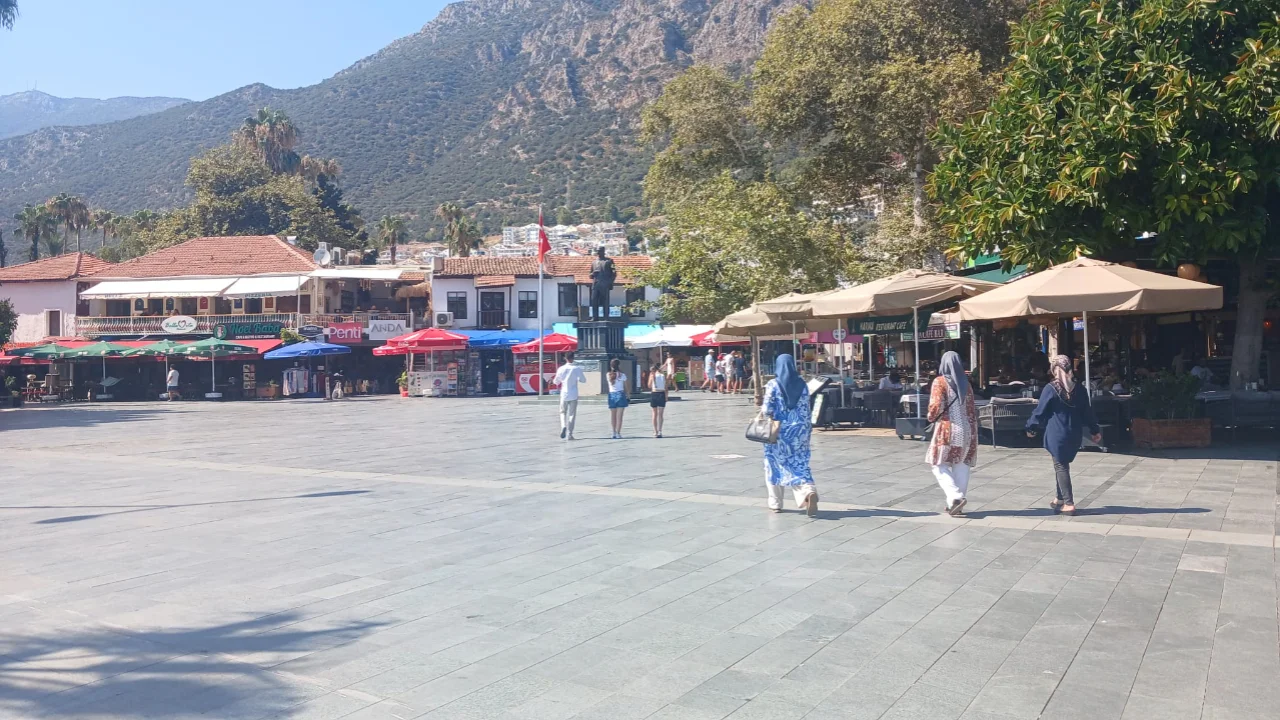 Termometrelerin 38 dereceyi gösterdiği, hissedilen sıcaklığın ise 40 dereceyi bulduğu Antalya’nın Kaş ilçesinde, öğle saatlerinde sokaklar bomboş kaldı. Yerli ve yabancı turistlerin yaz aylarında ziyaret etmeyi en sevdikleri noktalardan birisi olan Kaş, sıcaklığıyla bunaltırken, sokaklar bomboş, plajlar ise doldu taştı.