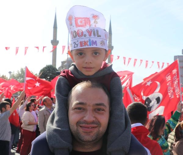 Kayseri'de, Türkiye Cumhuriyeti'nin kuruluşunun 100'üncü yıl dönümü kutlamaları Cumhuriyet Meydanı'nda yapılan törenle kutlandı. Törene Vali Gökmen Çiçek, Garnizon Komutanı Hava Tuğgeneral Haldun Taşan, milletvekilleri, belediye başkanları, siyasi parti temsilcileri ve çok sayıda vatandaş katıldı. Coşkulu bir kutlama yaptıklarını belirten Vali Gökmen Çiçek, "Cumhuriyetimizin 100'üncü yılını kutlamak için bir araya geldik. İnsan hayatında öyle anlar vardır ki, ölümsüz hatıralar olurlar. Biz, bu yıl Cumhuriyetimizin 100'üncü yılını Anadolu'nun sigortası olarak anılan Erciyes'in etekleri Kayseri'de, hep beraber kutlayarak kendi hatıralarımıza ölümsüz bir an yerleştiriyoruz. Bugün coşku ile birlik ve beraberlikle Kayseri'nin bu meydanında 'Cumhuriyetimizin 100'üncü yılı kutlu olsun' diye haykırıyoruz" dedi.