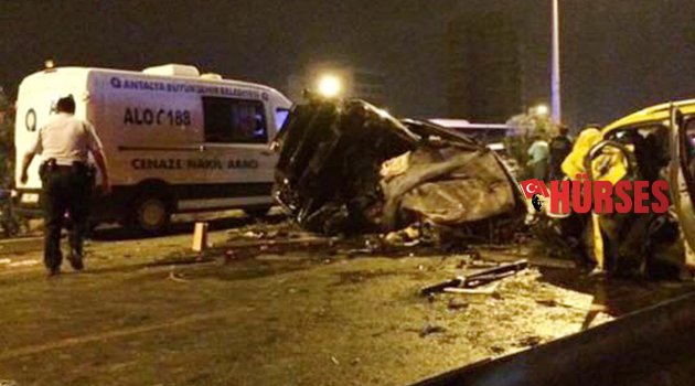 Kaza, Kepez İlçesi Gazi Bulvarı Düden Kavşağı'nda saat 04.30 sıralarında meydana geldi. Hal Kavşağı'ndan Düden Kavşağı yönüne giden İsmet Pehlivan'ın kullandığı 06 HP 350 plakalı otomobil, iddiaya göre aşırı hız nedeniyle kontrolden çıktı. Refüje çarpan otomobil karşı şeride geçerek, Nurettin Şekerci idaresindeki 07 T 2789 plakalı taksiyle çarpıştı. Kazada, sürücüler İsmet Pehlivan ile Nurettin Şekerci ve Pehlivan'ın aracındaki Ali Gazi ile Ali Güzelce öldü. Daha önce öldüğü açıklanan Tayfur Dikmen'in ise adının Ferdi Dikmen olduğu, kazada ağır yaralandığı tespit edildi. İsmet Pehlivan'ın kullandığı araçtaki Ferdi Dikmen'in Akdeniz Üniversitesi Hastanesi'nde tedaviye alındığı, hayati tehlikesi bulunduğu belirtildi. Adli Tıp Kurumu Morgu'ndaki incelemeden sonra sürücüler Pehlivan ve Şekerci ile ölen Ali Gazi ve Ali Güzelce'nin cenazeleri toprağa verilmek üzere yakınları tarafından morgdan alındı.