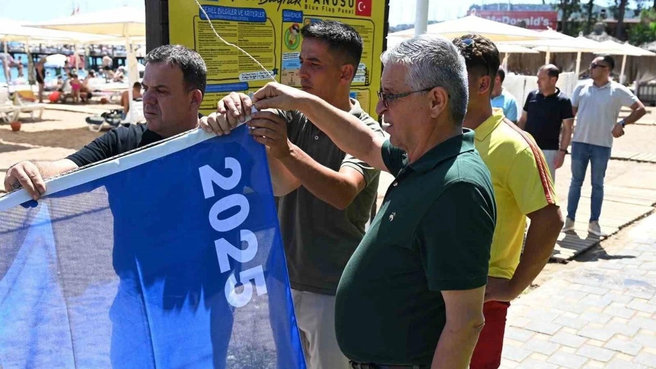 Konuşmaların ardından Başkan Topaloğlu ve protokol üyeleri, gönderdeki yerini alan mavi bayrağı hep birlikte göndere çekti.