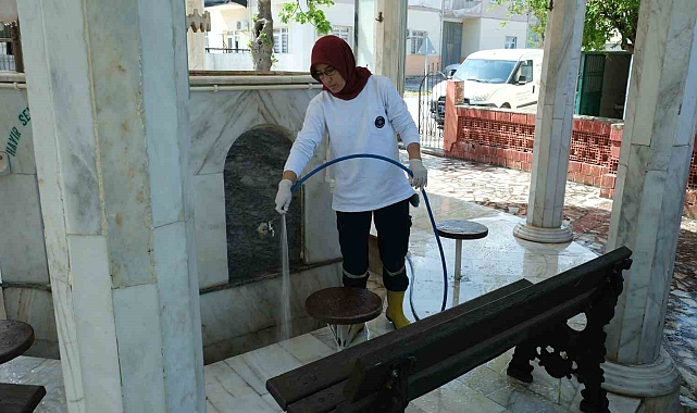 Park ve Bahçeler Müdürlüğü ekipleri, su tankerleri ile ilçe genelindeki camilerin bahçe ve avlularını yıkarken, temizlik işleri müdürlüğü ekipleri de cami içerisinde temizlik çalışmaları yapıyor.