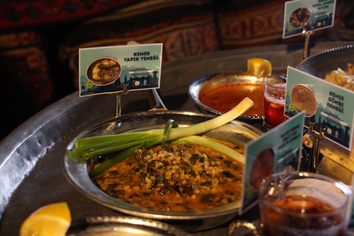 Kemer Kaymakamlığı ile İlçe Tarım ve Orman Müdürlüğü koordinesinde Kemer Yörük Parkı'nda gerçekleştirilen etkinlikte, Kemer gömbe ekmeği, hamur dolması, turunç ekşili maş fasulyesi çorbası, fesleğenli kıl patlıcan yemeği, yufka ekmeği tatlısı, yapık yemeği ve bahar şerbeti katılımcıların beğenisine sunuldu.