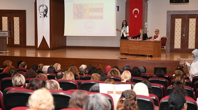 Daha sonra ise Konyaaltı Belediyesi Feslikan Salonu’nda düzenlenen programda “Kadına Yönelik Şiddetin Toplumsal Hukuksal ve Ailevi Boyutu” konusunda bir panel düzenlendi. Panelin açılışında konuşan Konyaaltı Belediyesi Başkan Yardımcısı Tuğba Erke Bostan, dünya genelinde 25 Kasım’da kadına yönelik şiddetle mücadeleye dikkat çekildiğini belirtti. Tuğba Erke Bostan, “Erkeklerin şiddetle mücadele günü yok. Biz kadınlar olarak şiddetle mücadele gününü etkinlik sayılarını arttırarak anmak, bu etkinlikleri arttırmak bu farkındalıkları çoğaltmak zorundayız. Özellikle erkeklerin gözünde ki kadınların farkındalığının yükseltilmesine inanıyoruz” dedi.