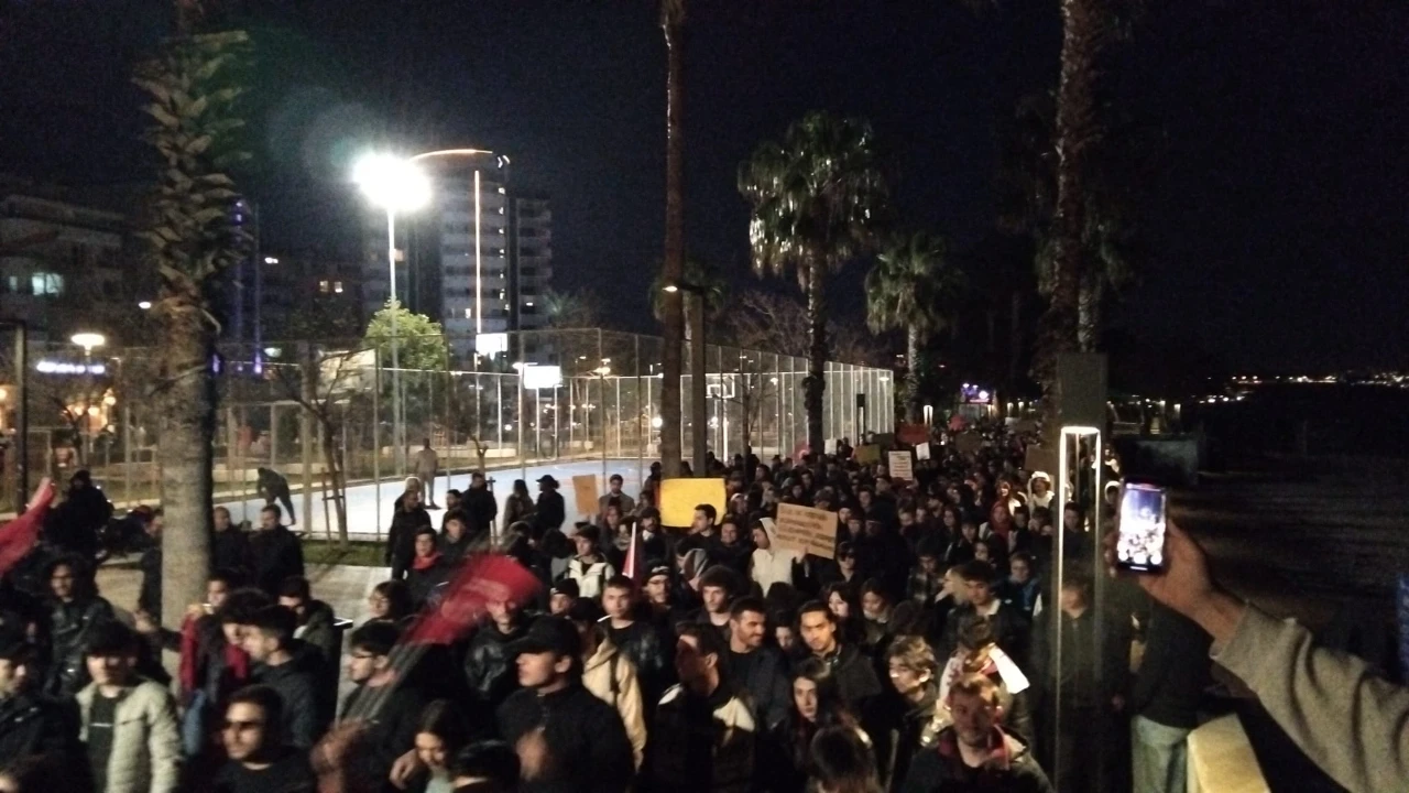 Konyaaltı Sahili’nde toplanan göstericiler polis kontrolünde yürümeye başladı. Giderek sayının artmasıyla sahildeki gösteriye katılan sayısı hızlıca arttı.