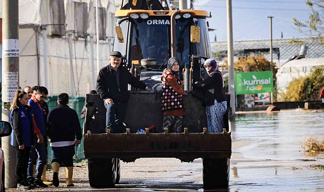 Bir itfaiye aracı yolun çökmesi sonucu suya batarken, evlerinde mahsur kalan aileler küçük çocuklarıyla birlikte kepçe yardımıyla kurtarıldı. Kurtarılan ailede bir bebek ve 3 yaşlarında bir çocuk bulunuyor.