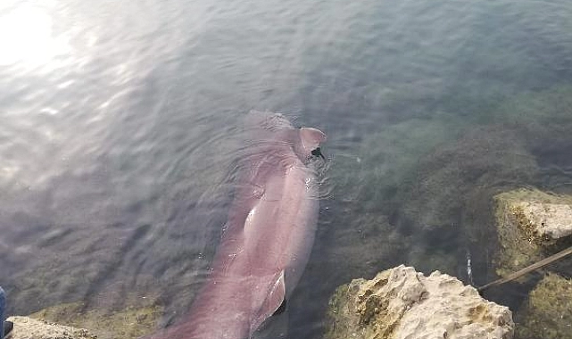Mersin'de kıyıya 4 metrelik cam göz köpekbalığı vurdu