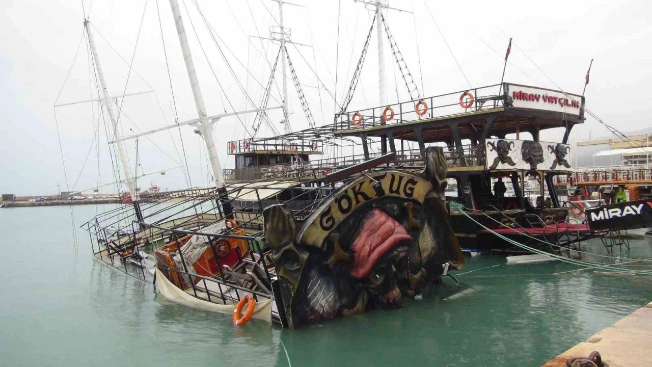 Silifke ilçesinde dün gece şiddetli yağış ve fırtına etkili oldu. Gece yarısı etkisini artıran şiddetli fırtına nedeniyle limanda bağlı bulunan, 130 yolcu kapasiteli ve yaklaşık 25 metre uzunluğundaki Göktuğ isimli gezi teknesi su alarak battı.