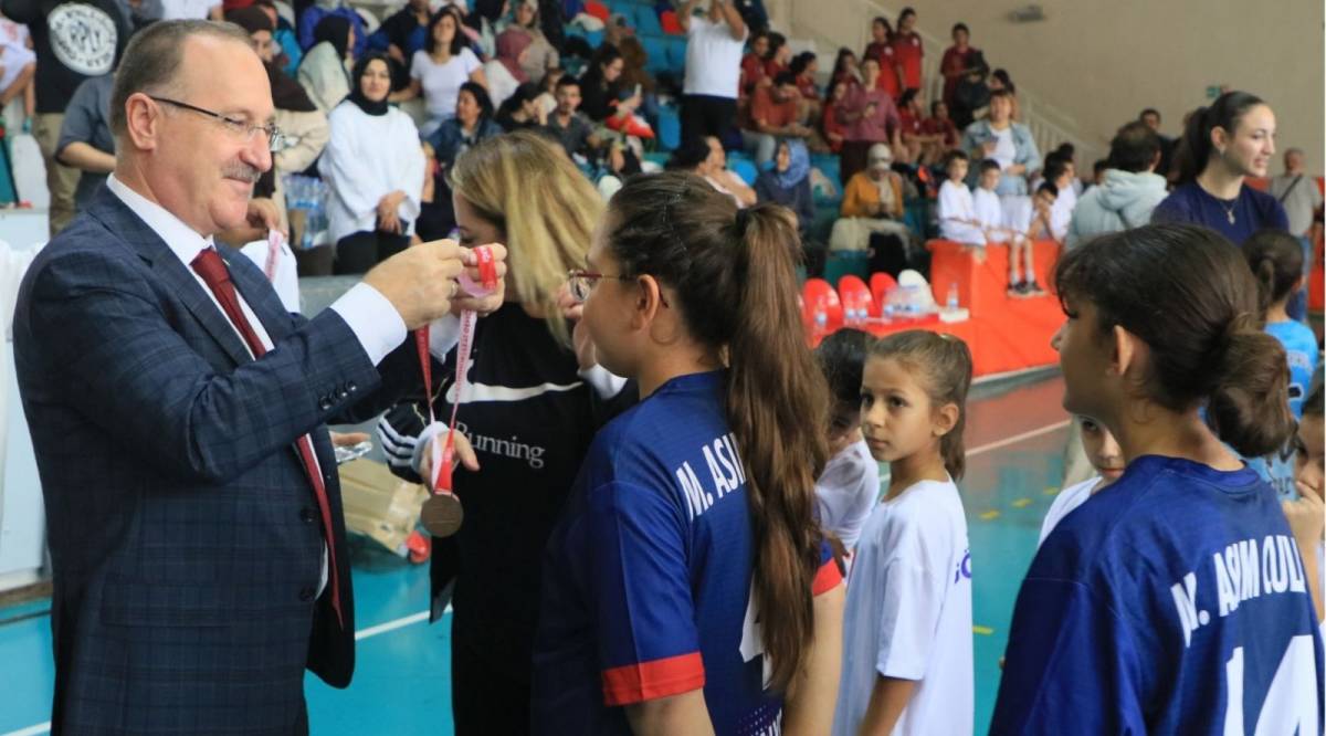 İl Milli Eğitim Müdürü Mehmet Yasin Eriş de minik sporcuların mücadele ettiği müsabakayı tribünden takip ederek öğrencilerin heyecanına ortak oldu.