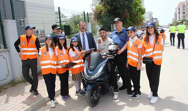 Kumluca Kaymakamı Tekin Erdemir ve Emniyet Müdürü Mehmet Akbulut'un da katıldığı trafik uygulamasında, öğrenciler trafik polisleriyle sürücülere kask takmanın faydaları hakkında bilgi verdi. Kaymakam Erdemir, uygulamada kask takmayan sürücülere proje kapsamında ceza kesilmediğini, kask hediye edildiğini söyledi.