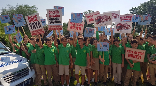 Öğrencilerden yaya önceliği nöbeti